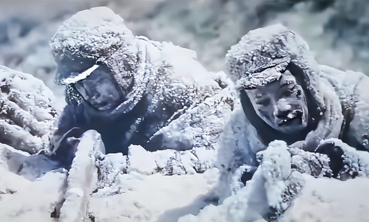 走近一瞅,整整一个连的志愿军战士,全冻死在阵脚上。