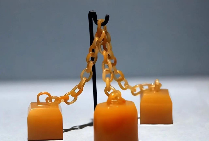 这方田黄三链章由整块田黄石镂空雕琢而成,三枚钤记用石链衔接,阔别刻有“乾隆宸翰”“惟精唯独”“乐天”字样,是清代皇家工艺的珍品,属于国宝级文物。