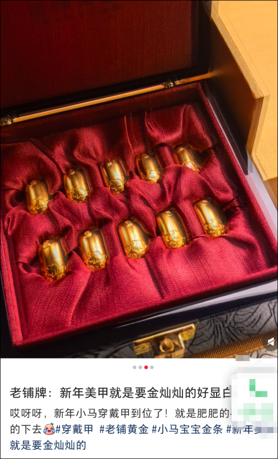 六福珠宝、周六福等品牌店铺的伴计,也将金饰用于好意思甲“宣传”,在纰漏媒体进行营销。