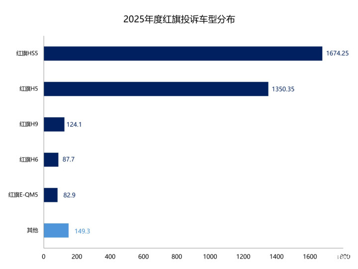从投诉车型漫步来看,红旗品牌的投诉高度归并在红旗HS5和红旗H5,两款车型投诉指数揣度占品牌合座投诉指数的87%。红旗H9也有部分车主在投诉,但体量远低于前两者。